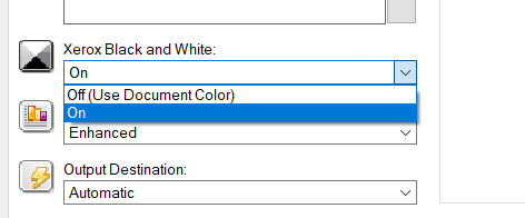 In the pull-down menu under Xerox Black and White, select Off (Use Document Color).